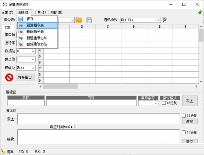 4、编辑功能如图所示,可以在软件创建新的指令表,可以新建通讯协议