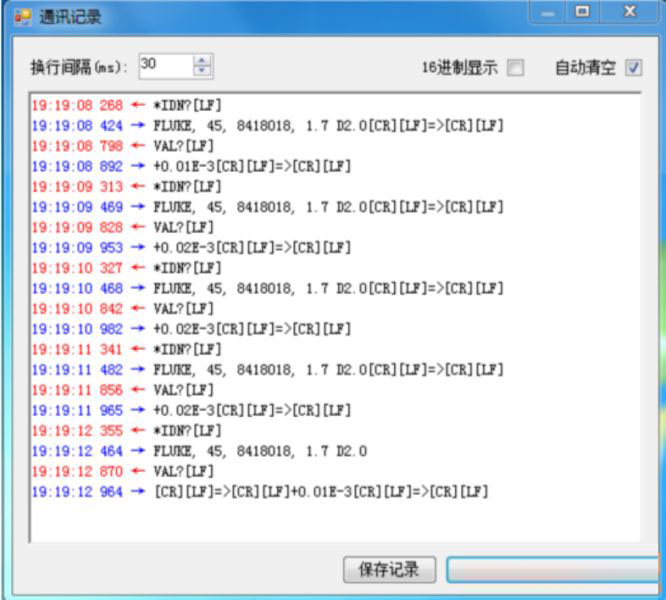e) “保存记录”按钮:可将当前显示的数据记录以txt文档类型保存