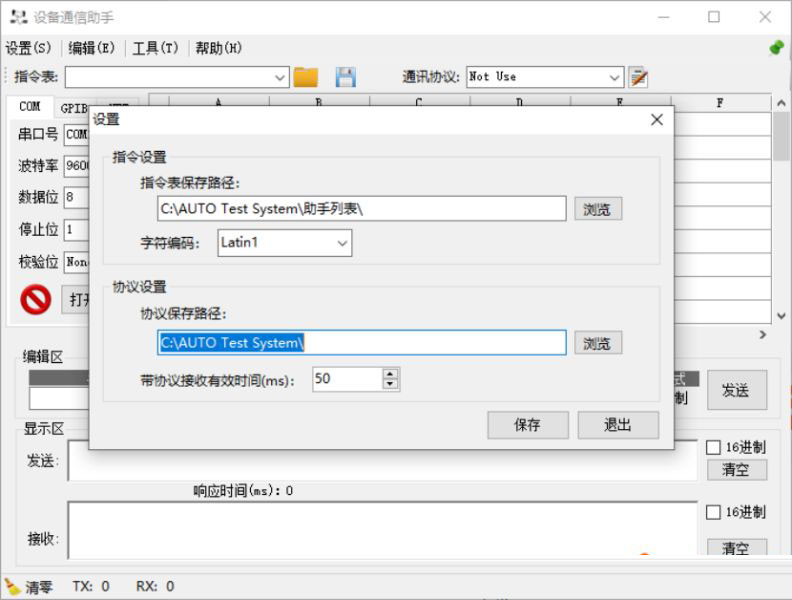 2、指令设置界面,设置指令表保存位置,设置协议保存位置
