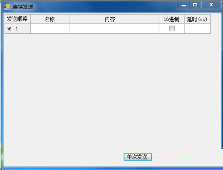 连续发送可按排列顺序,连续发送多条数据,并且每条数据发送的延时时间可单独设置。还可以根据需要选择单次发送或循环发送。