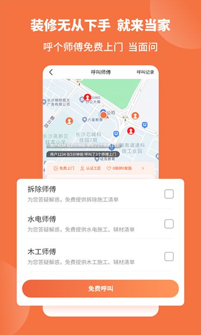 *呼叫服务仅适用于室内家装,房屋维修、复式、室外施工等需求无法承接。