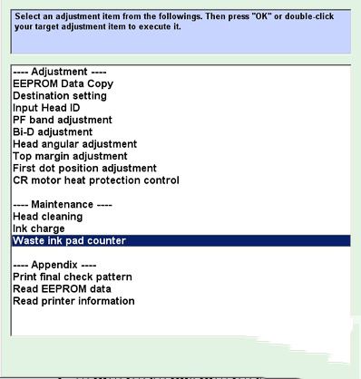 2、选择 Waste ink pad counter (废墨计算器)