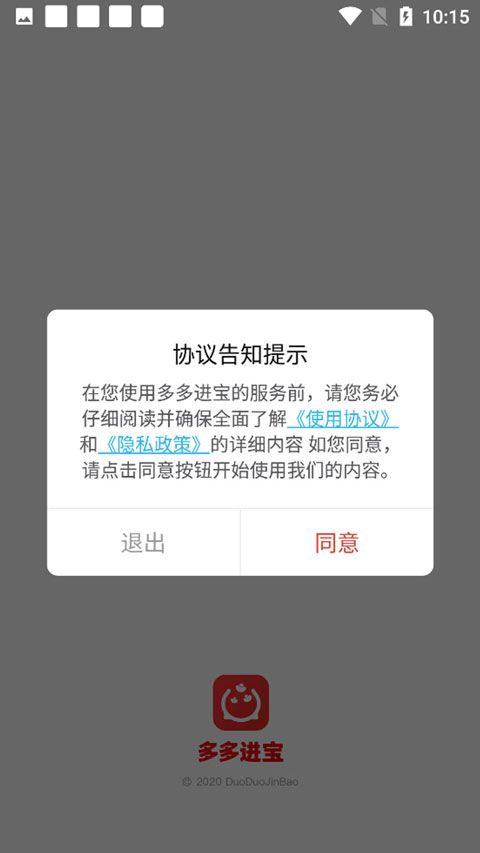 1、打开在本站下载的多多进宝官方版,点击同意