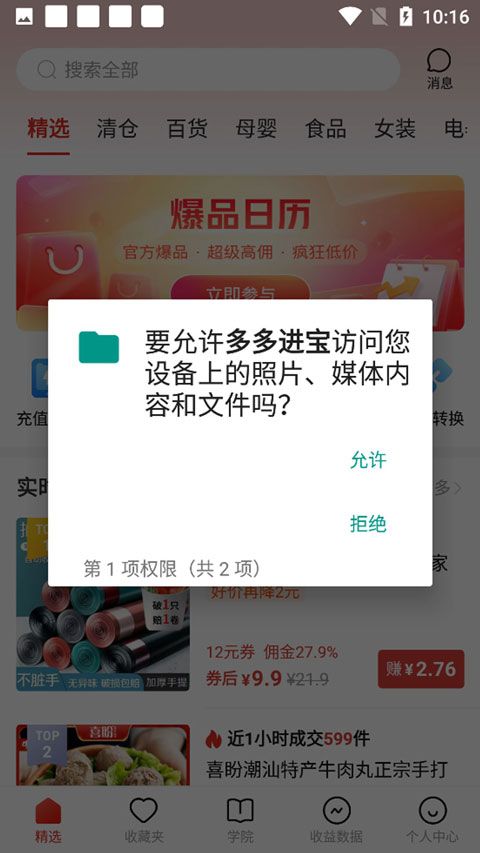2、点击允许访问权限,就进入到软件主界面了,页面会提供多种商品供用户推广或购买