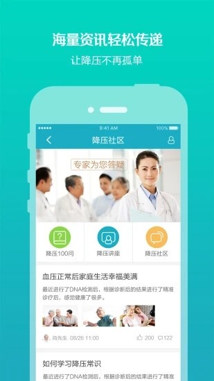 【降压社区】提供高血压管理专业知识,帮助患者进行健康管理;高血压患者交流圈,实时分享降压经验;