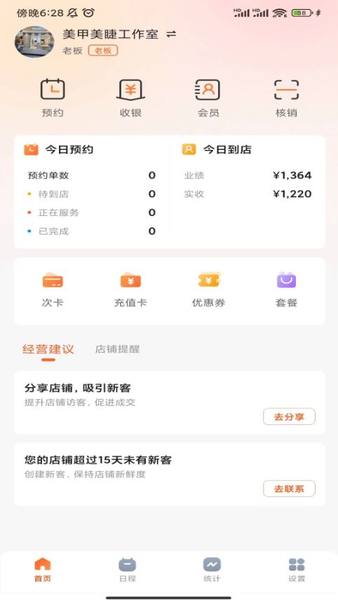 能够在线处理客户预约,支持员工排班及日常工作任务的管理。