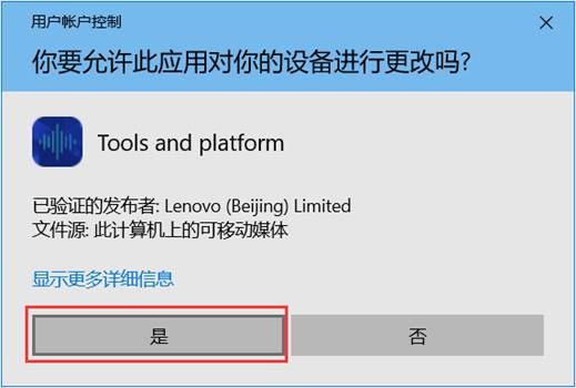 双击运行“Y9000X 2022轻微电子音改善工具.EXE”,可能出现的用户账户控制提示,请选择“是”,如图1: