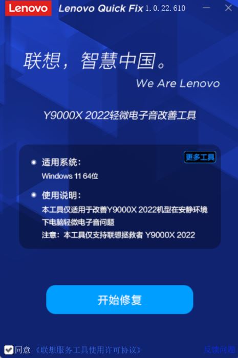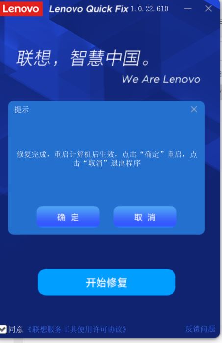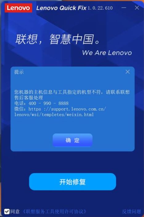 重要提示:您需要在电脑端下载并运行Lenovo Quick Fix工具。使用之前请阅读详细的操作说明和注意事项。鉴于数据安全考虑,运行工具前请您务必备份电脑中全部重要数据,避免产生任何损失!