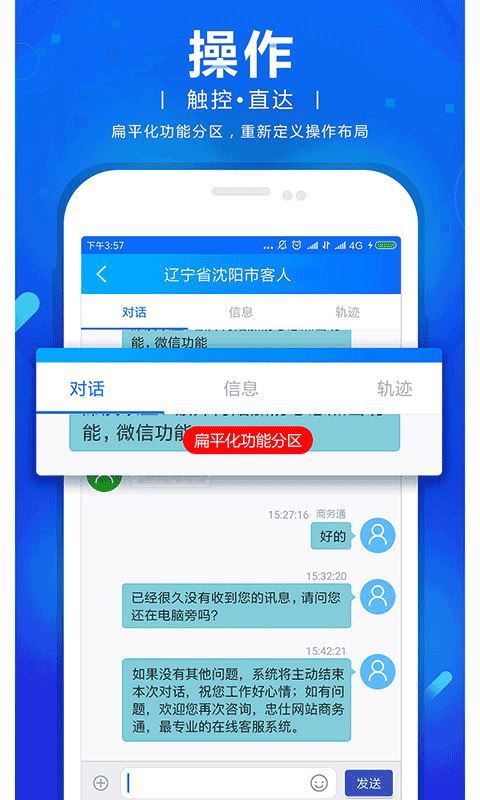 1、忠仕网站商务通app操作很简单,轻轻松松就可以上手使用;