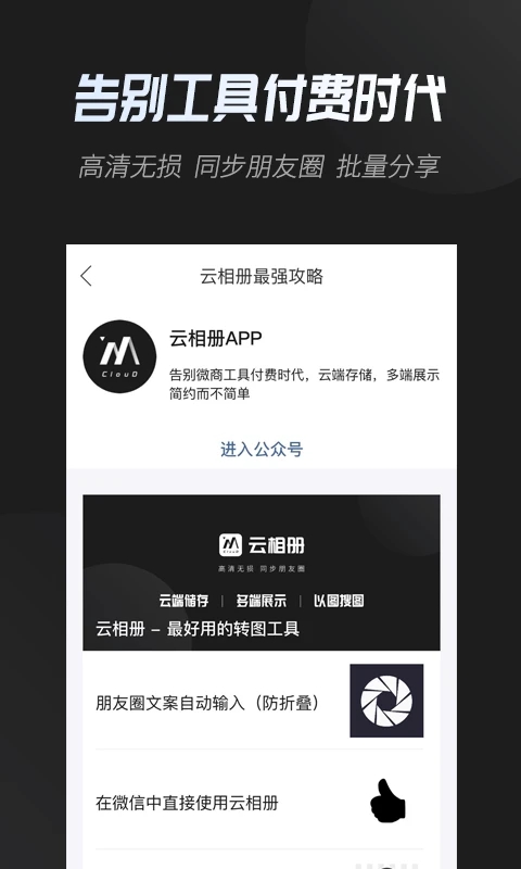 云相册是一款完全免费的团队共享/分享图文视频素材软件,更是微商最青睐的一款APP。