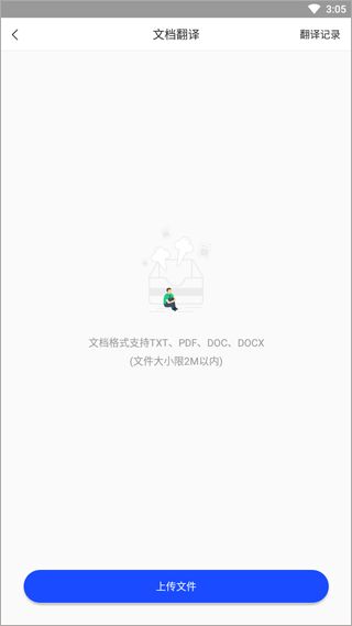 3、点击文档,用户可以直接上传手机上的文档文件进行翻译。
