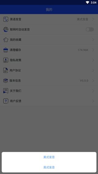 5、另外,点击我的,用户还可切换中式或者美式发音。