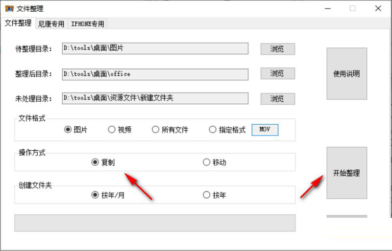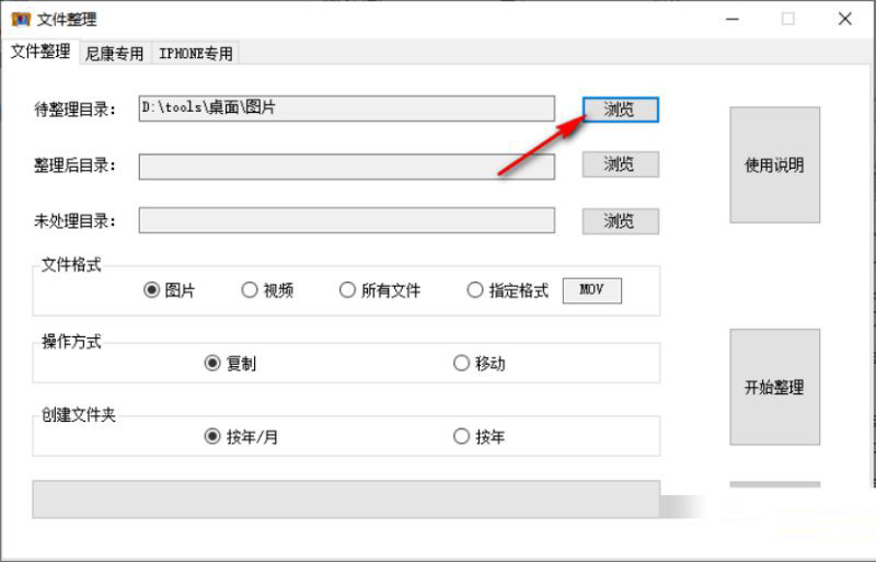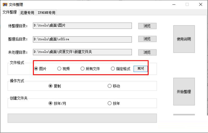 2、整理后目录:存放整理后的文件。软件会自动按年、月创建文件夹,并将相应文件按时间进行归类。