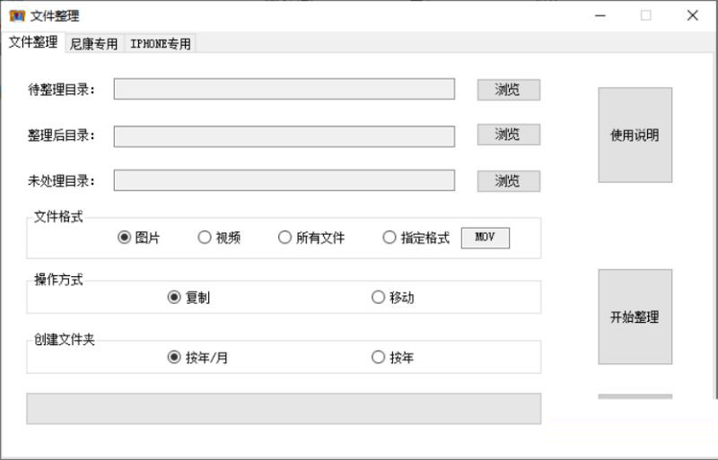 1、待整理目录:软件会获取该目录下所有文件,含各级子文件夹内的文件。