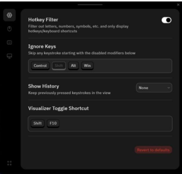 功能强大且易于使用的配置选项。过滤热键,调整可视化位置和逗留时间,并从吸引人的动画预设中进行选择。