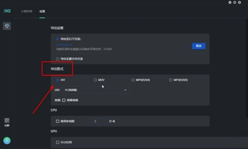 3.软件提供了【AVI】【MOV】【MP4(h264)】【MP4(h265)】四种选项,
