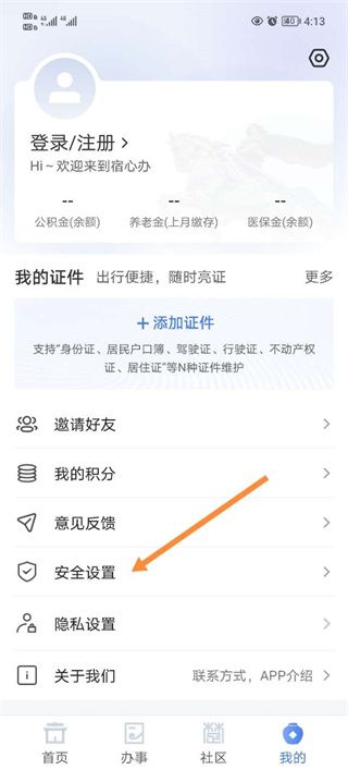 1、进入软件之后来到我的选项找到安全设置功能点击。