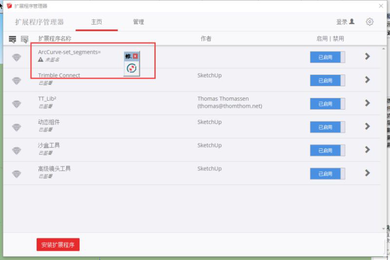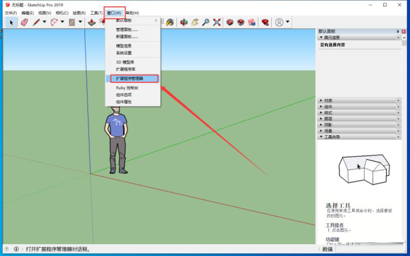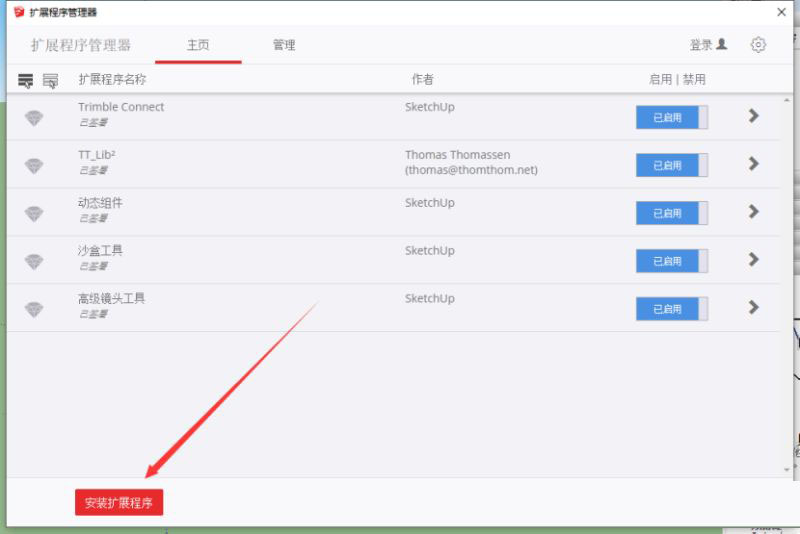 打开草图大师,点击【窗口】-【扩展程序管理器】