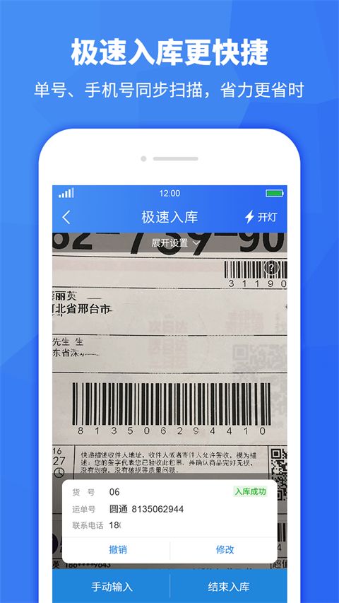 支持运单号、手机号同步扫描,一次扫描即可入库;