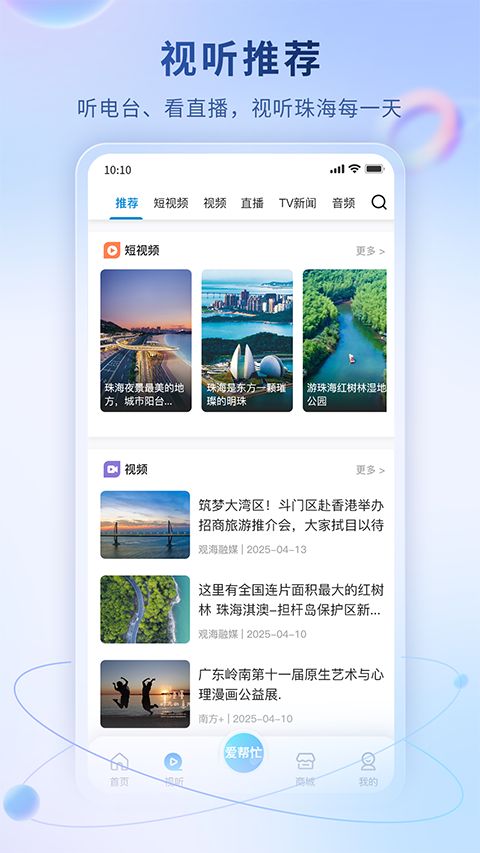 观海融媒app是由珠海传媒集团倾力打造的一款新闻资讯软件,以“观天下、见珠海”为理念,每天为用户提供权威的新闻资讯报道,包含民生、政务、看头条、看财经、看生活等分,让珠海的市民每天阅读本地信息,掌握全球热点动态,更有随手拍功能,市民将化身为监督者,举报身边违法和不文明的事。另外,软件还提供了丰富的视听服务,用户可以观看珠海本地的电视直播,以及收听广播,看新闻、听广播更轻松。
