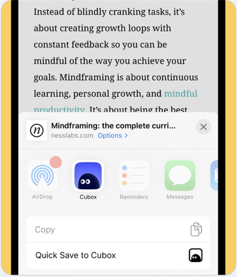 通过系统共享按钮,在任意 App 中直接发送内容到Cubox。使用前需要先添加,建议添加到个人收藏以方便使用。