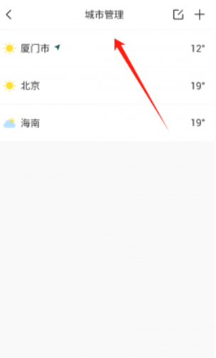 3、点击城市管理页面,可查看已添加城市天气,如厦门、北京、海南,支持添加和管理城市。