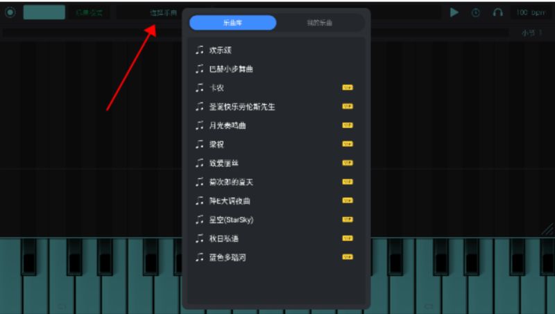 3.用户可以根据自己的需求,在这里选择不同的音乐进行弹奏。