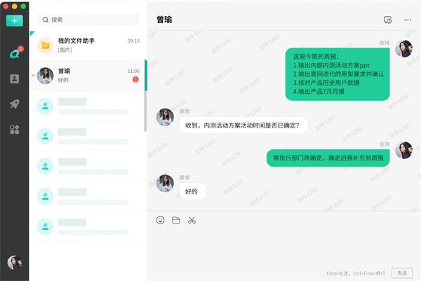 同企业成员无需加好友即可发起私聊或群聊,非企业成员可添加好友后私聊。
