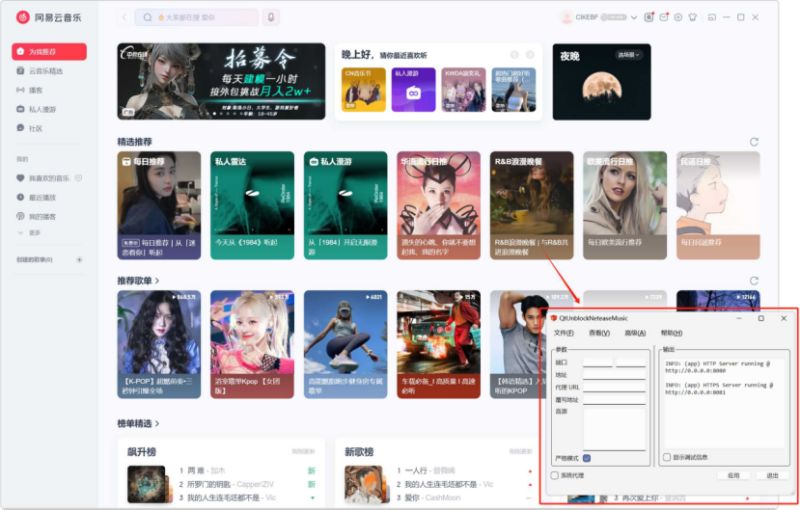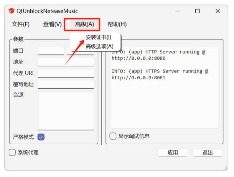 该软件基于UnblockNeteaseMusic,提供了一种自建代理节点【可本地或放于服务器运行】的方式让不可用的歌曲包含多个听歌源。若遇到网易云无法联网,检查是否开启了HTTPS端口,或尝试用管理员权限安装证书。