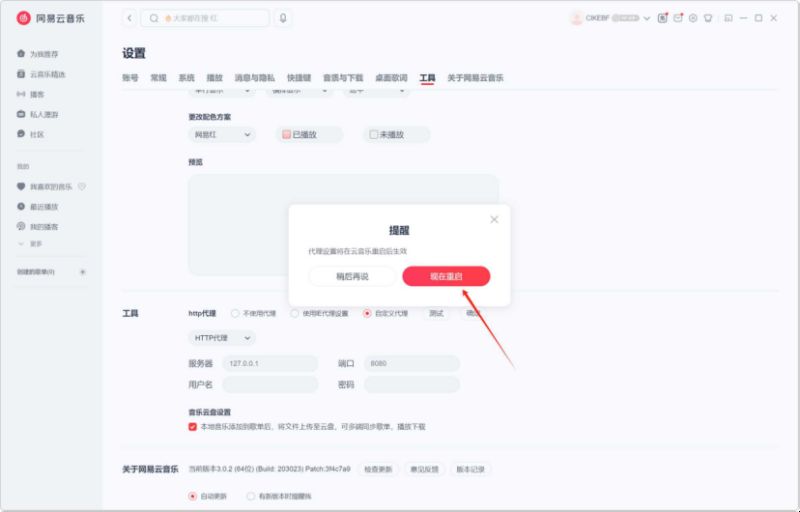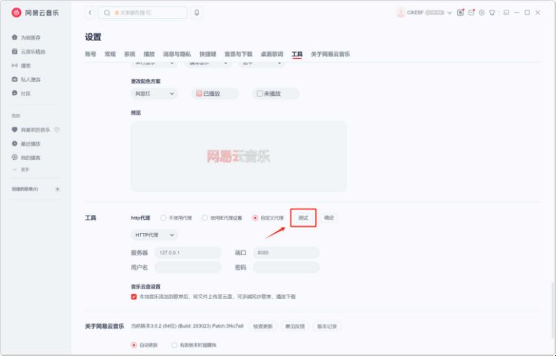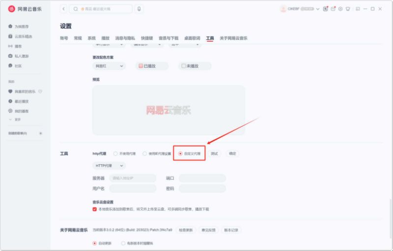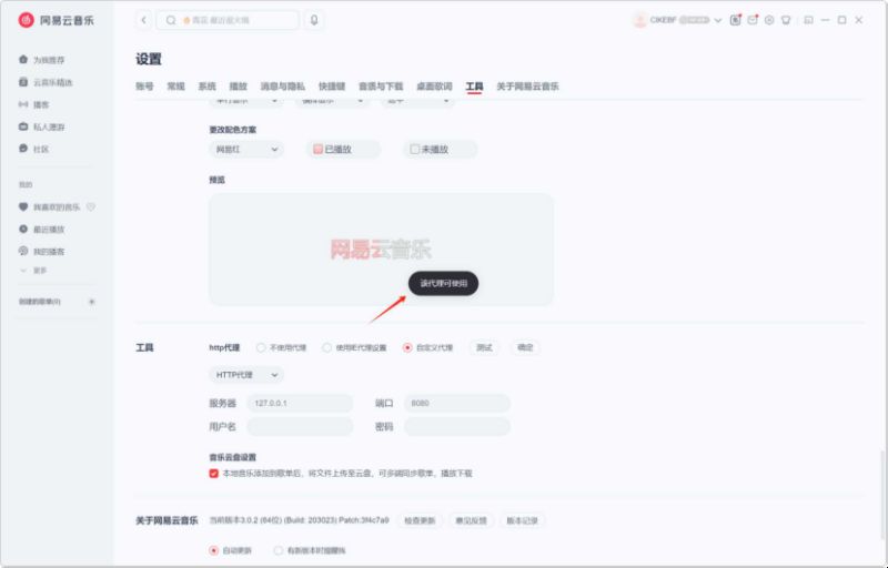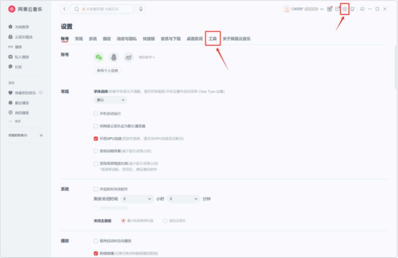 然后,我们在网抑云客户端里,点击右上角的设置–工具。