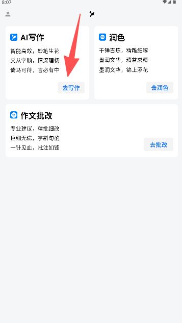 1、在功能首页选择“AI写作”功能进入写作界面。