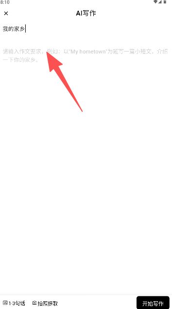 2、在输入框内填写作文的标题以及具体要求,该输入框支持中文或者英文输入。