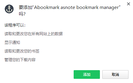 解压下载的压缩包,将abookmarkasnote.crx文件拖动到浏览器,点击下图所示添加按钮即可
