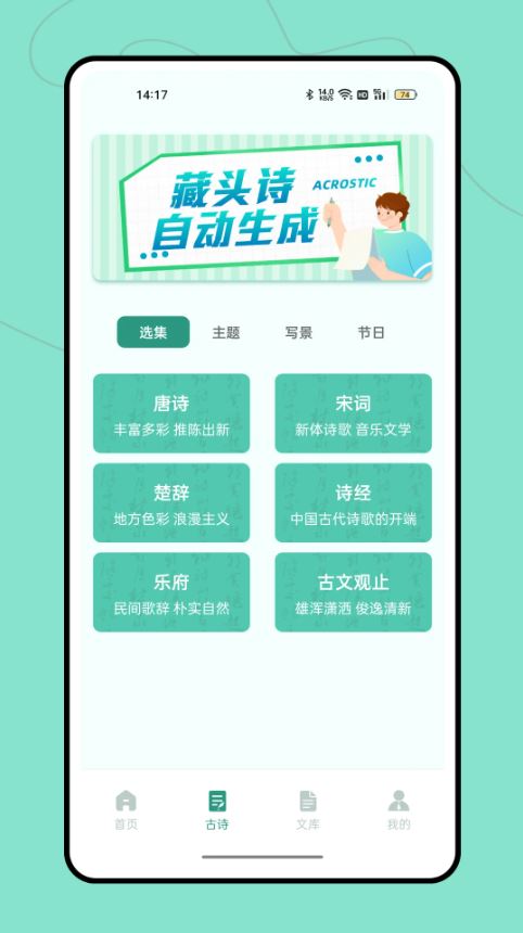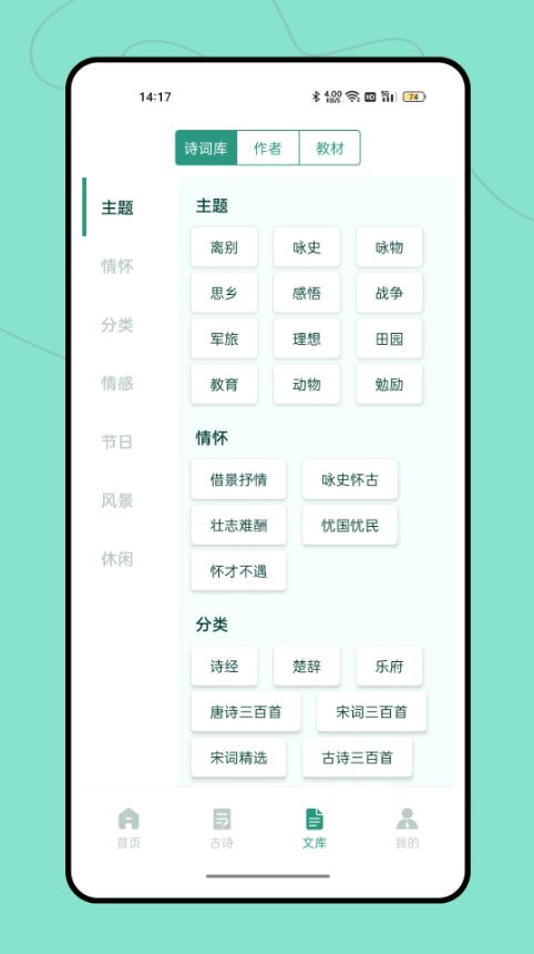 3、你可以通过这个软件找到中国名人的诗词,它有很多实用的功能。