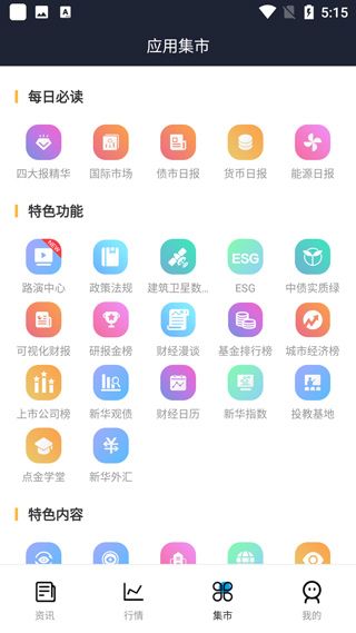 3、点击集市,拥有每日必读、特色功能、特色内容、财经视频、合作功能等等板块,每个板块都拥有许多不同的功能