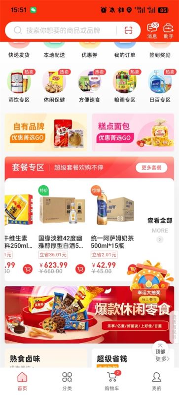 提供超市日常销售的食品、零食、粮油等生活必须的商品,充分利用互联网和电商平台的优势;