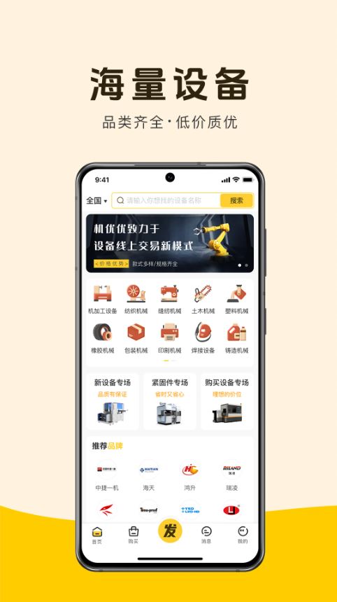 机优优二手设备app是一款专注于工业领域的二手设备交易软件,里面汇集了纺织业、服装业、印刷体、机械制造业等多样行业的二手设备资源,用户可以随时在线查找自己需要的二手设备,找到后可以直接在软件上完成交易,轻松买到需要的设备。同时,用户可以将自己手里的二手设备发布到软件上,坐等有需要的买家联系你,轻松将其变现,非常的方便。有需要的朋友可在本站下载使用!