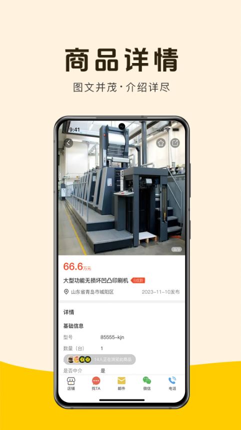 3、查看详细信息后点击下方的电话,和对方联系购买设备。