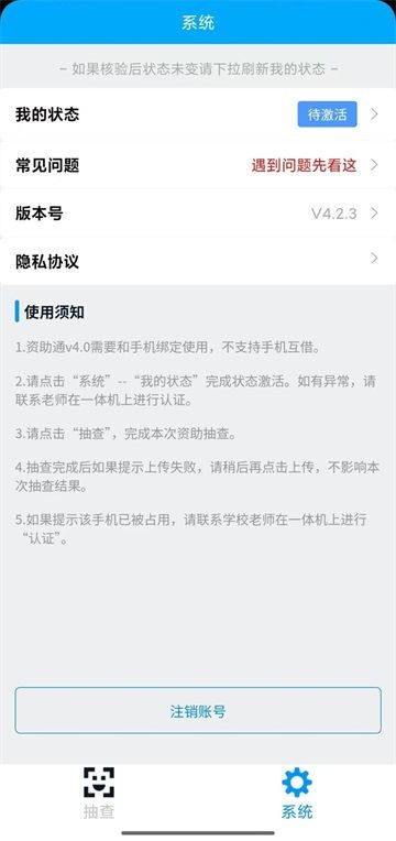 7、学生拿着身份证到资助办采集完,状态栏显示“待激活”