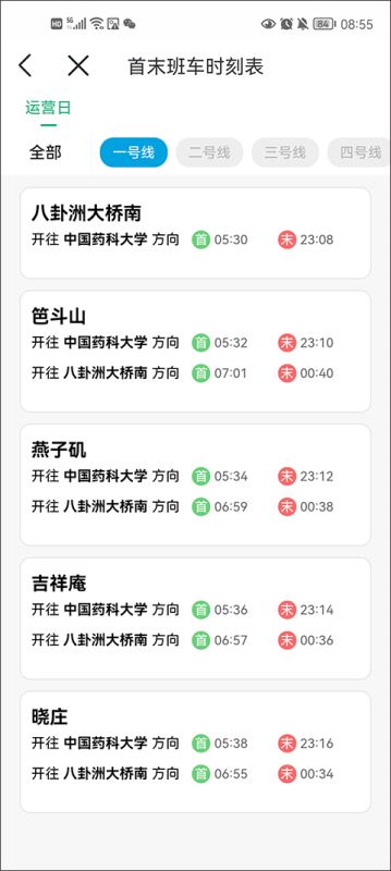 2、南京地铁线路和首末班时刻查询。