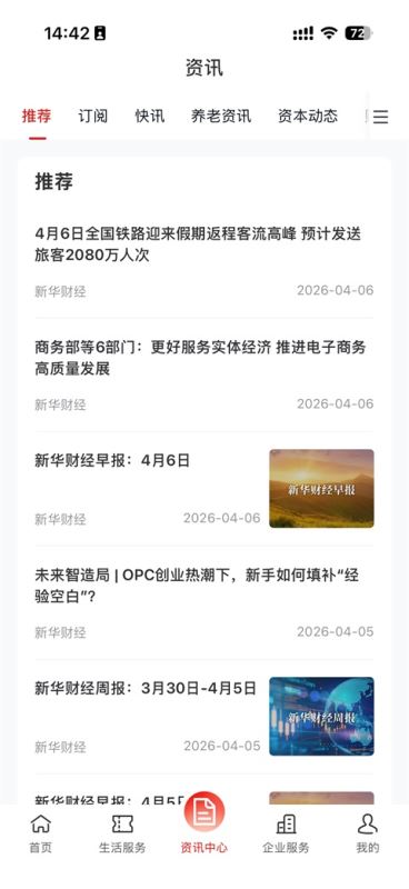 资讯内容以财经资讯为主,如铁路返程客流、商务部电商政策、新华财经早报等。想了解行业动态、财经新闻,多来这里刷一刷。
