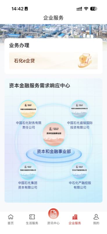 主要业务包括:石化e企贷、资本金融服务需求响应中心。你可以在这里办理企业贷款、资本金融相关业务。