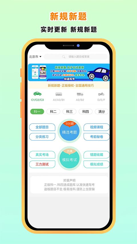 2、正版驾考技巧,快通驾考自动更新,全国通用。