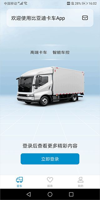 1、进入比亚迪卡车app后进行登录。