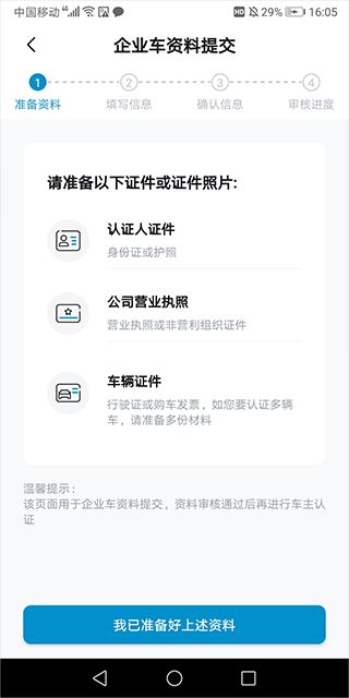 3、除了个人认证外,企业车辆认证也可以在上面操作。
