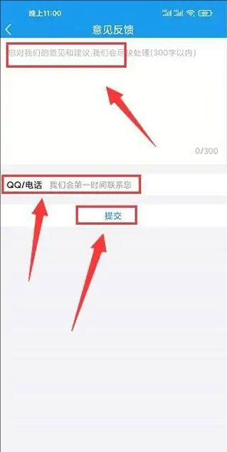 4、填写意见反馈或建议内容,联系方式,点击“提交”按钮。