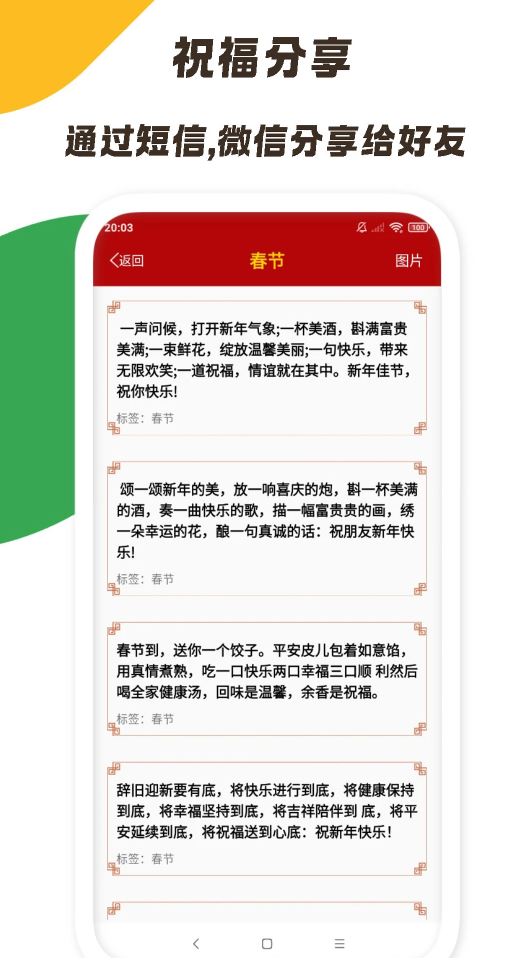 2.此软件操作简单,逢年过节再也不用愁发送祝福信息了。