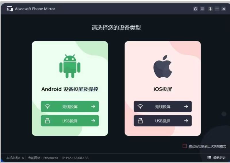 Aiseesoft Phone Mirror 具有简洁直观的用户界面,无论您是技术专家还是普通用户,都能快速上手,轻松使用各项功能。其设计考虑到了不同用户的需求,使得手机与电脑之间的操作更加高效。