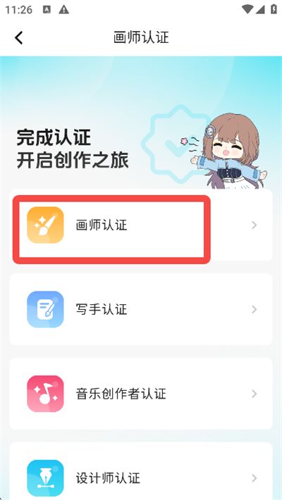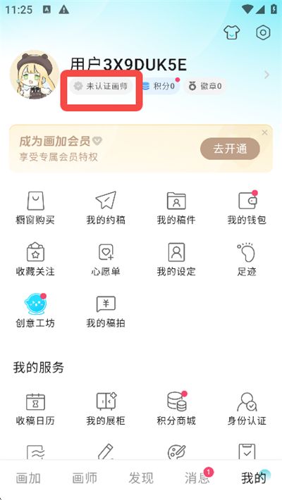 4、返回【我的】页面,点击昵称下方的【未认证画师】。