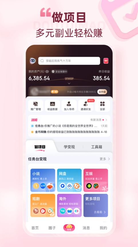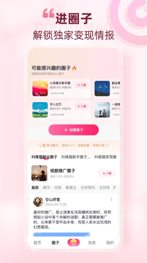 3、经验分享:提供各赛道达人变现经验分享,助力用户收益翻倍。